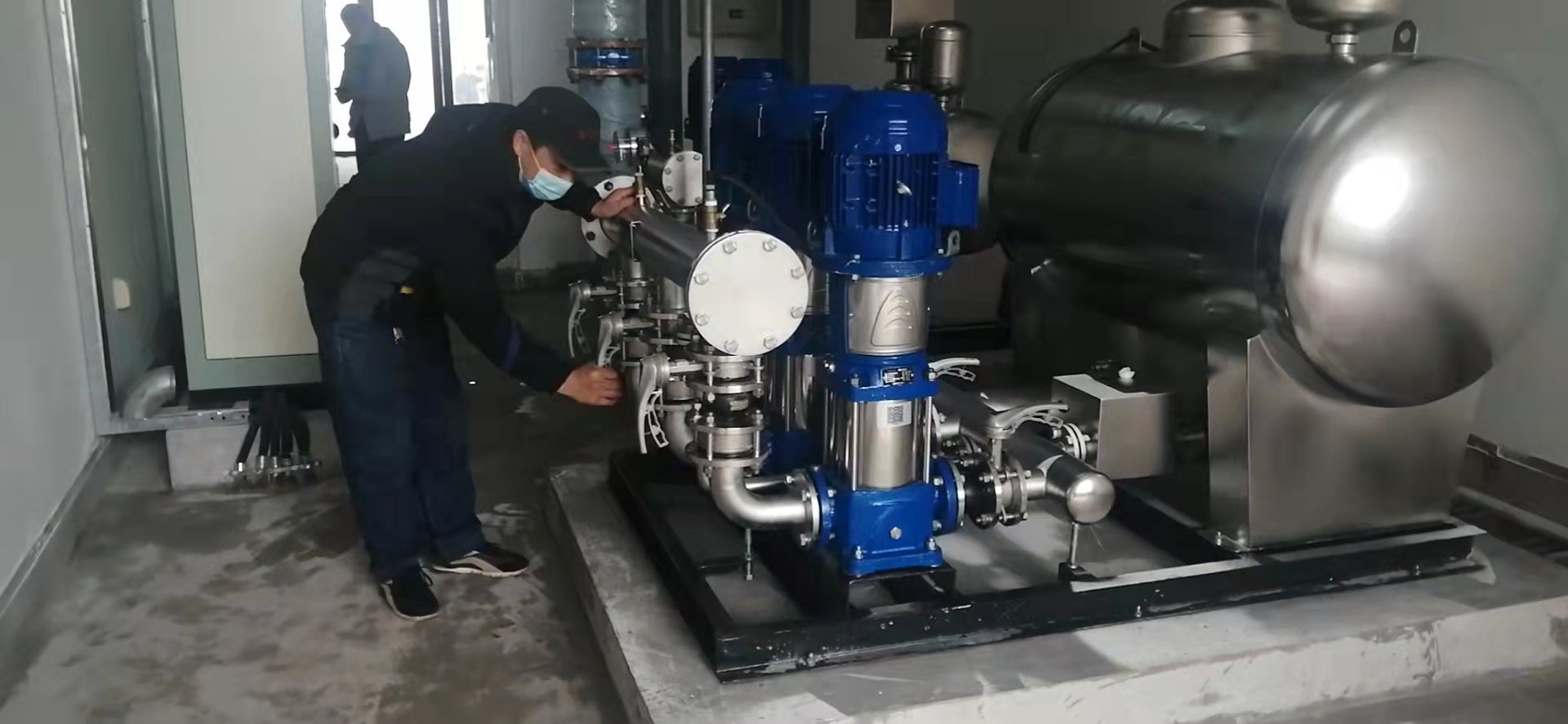二次供水公司克服疫情期間人員不足、配件不足的困難,僅用6小時(shí),完成備用隔離點(diǎn)二次泵房設(shè)備安裝、調(diào)試工作。