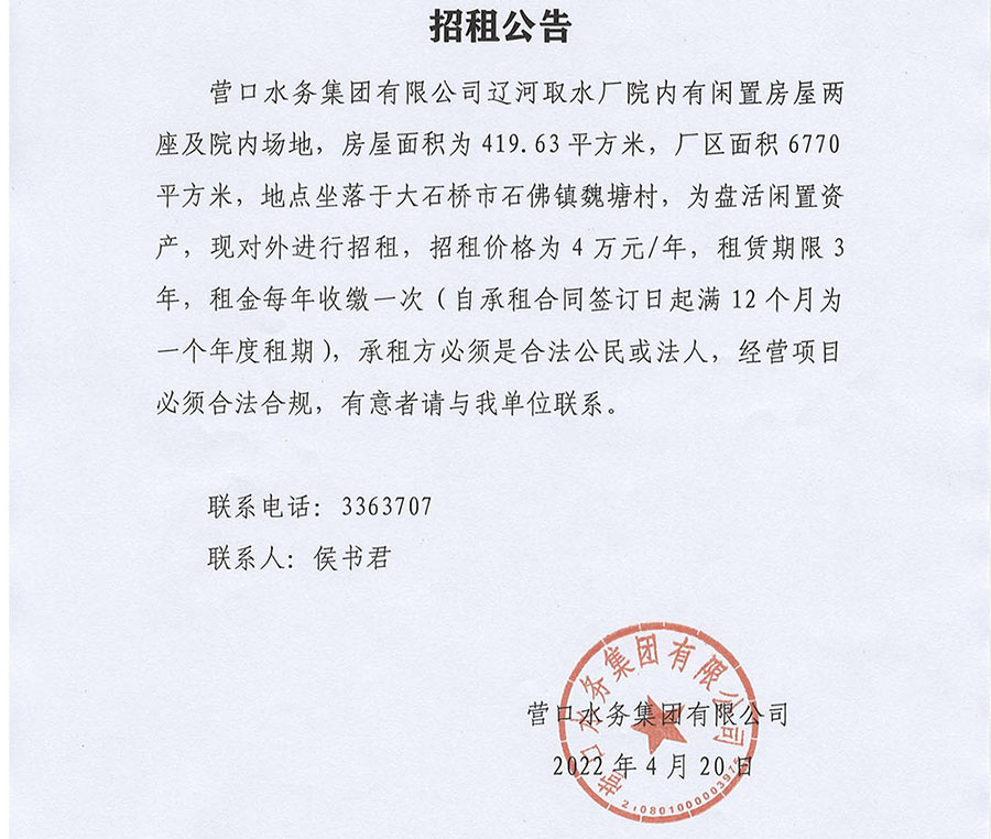 營口水務(wù)集團(tuán)有限公司