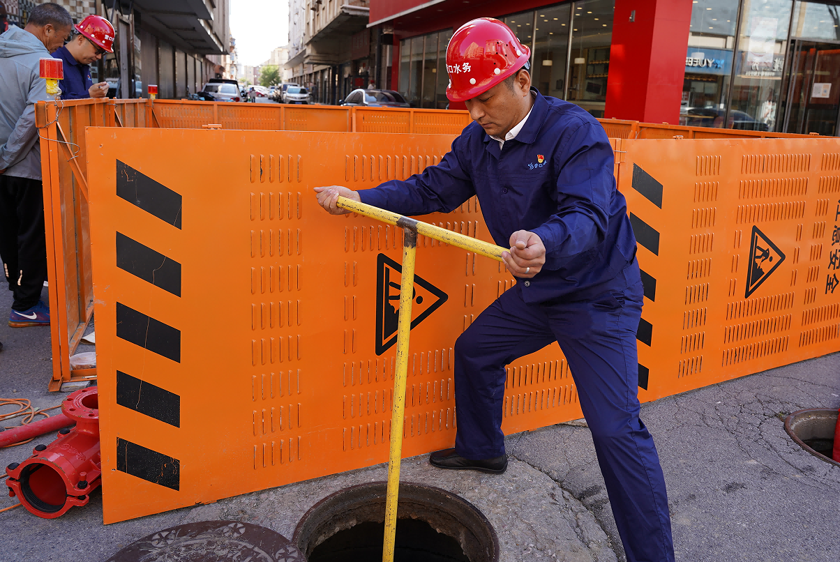 在大型管網(wǎng)改造過程中,一些交通樞紐地點(diǎn)車輛人員流動(dòng)性較大,為保證施工安全,他都主動(dòng)同施工隊(duì)標(biāo)識(shí)出施工作業(yè)區(qū)域、安全防范區(qū)域、管材物料堆放區(qū)域,監(jiān)督施工單位設(shè)立警示圍擋夜間警示燈等安全警示標(biāo)志;他嚴(yán)把審核關(guān),督促施工人員穿好警示服,戴好安全帽,管線溝槽內(nèi)是否設(shè)立安全防護(hù)支撐,發(fā)電機(jī)組設(shè)備是否安全運(yùn)行,排水管線的設(shè)立,吊裝設(shè)備的安全檢查,周邊圍觀人群的勸離,作業(yè)完畢后,做到場(chǎng)清料凈。