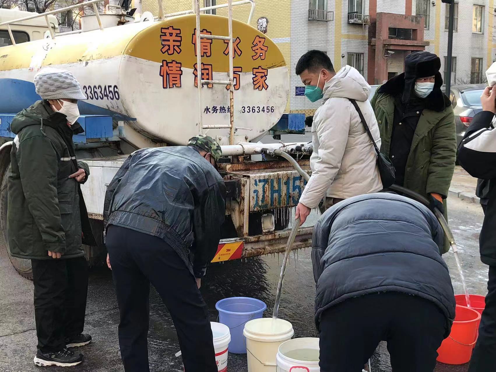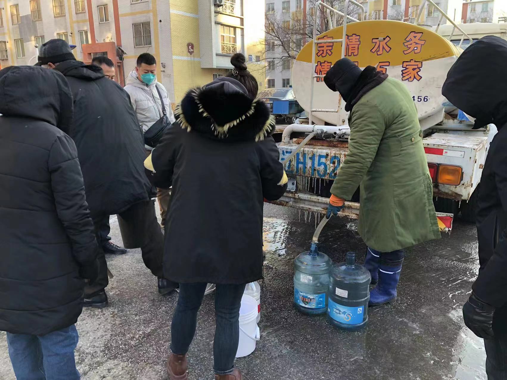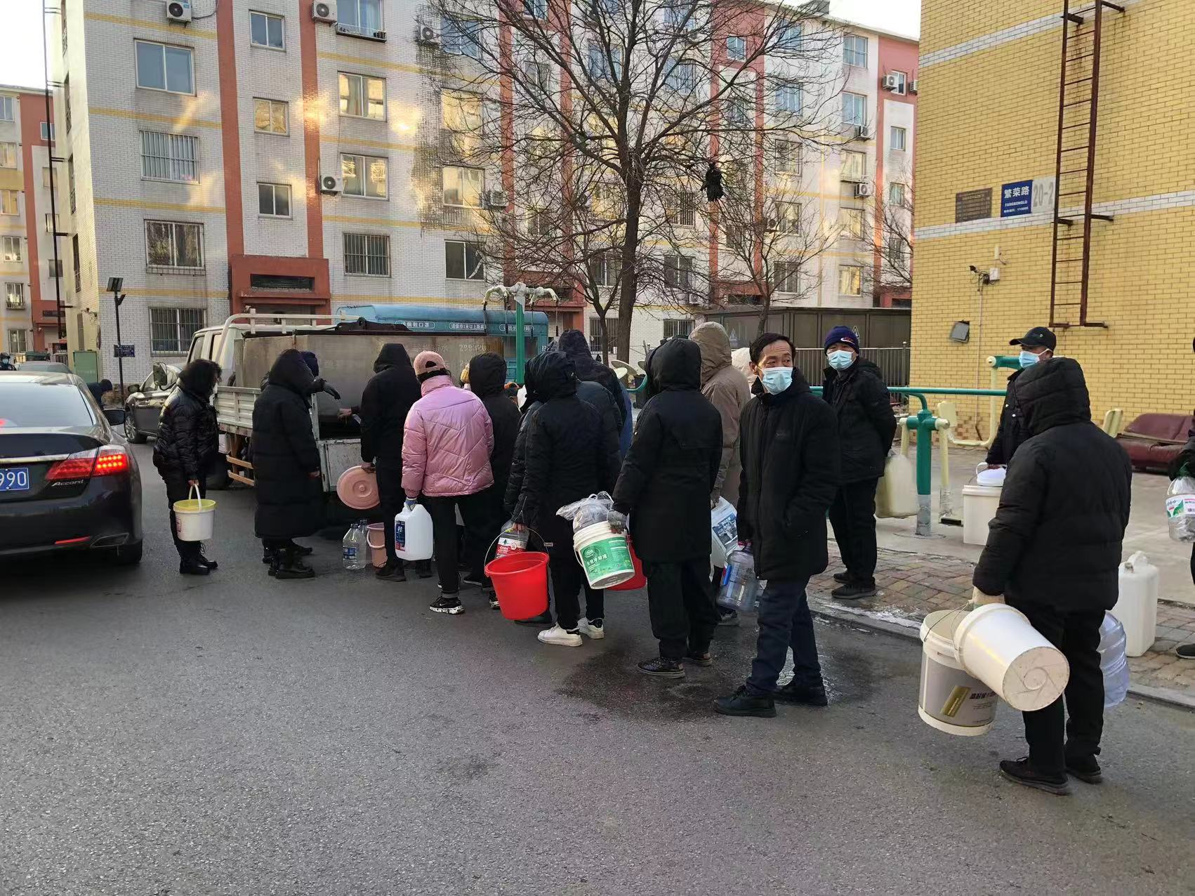 “水務(wù)集團來送水了,這水送的太及時了,真是太感謝你們了!”幾位小區(qū)居民接過裝滿水的水桶感激地說到。