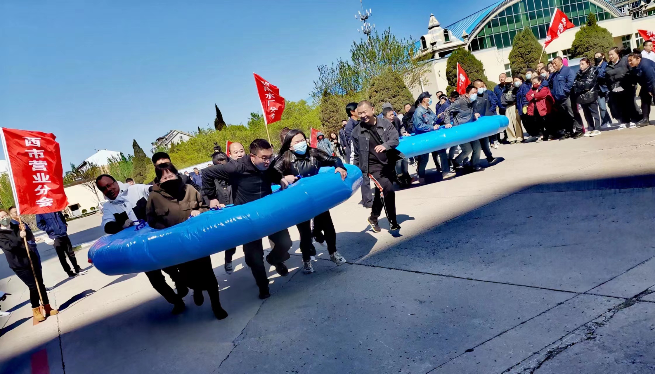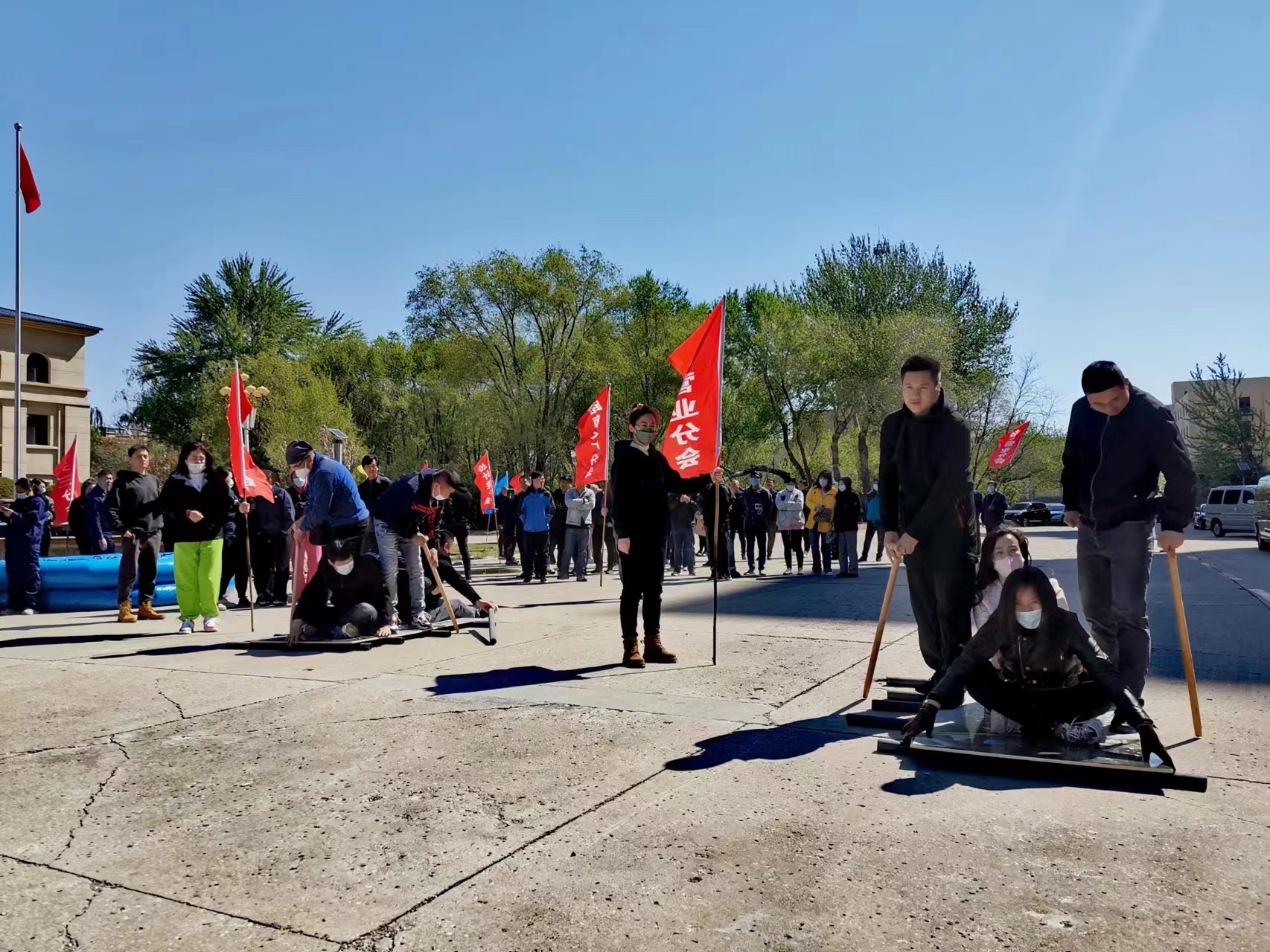 4月26日上午8:20分,集團(tuán)公司領(lǐng)導(dǎo)與基層工會(huì)干部和會(huì)員近500人,集聚于公司樓前廣場(chǎng),相繼展開(kāi)了“眾人劃槳開(kāi)大船”和“八仙過(guò)海”兩項(xiàng)趣味性團(tuán)體拓展活動(dòng),寓意和引導(dǎo)眾人心往一處想、勁往一處用,以默契的團(tuán)隊(duì)協(xié)作攻堅(jiān)克難。