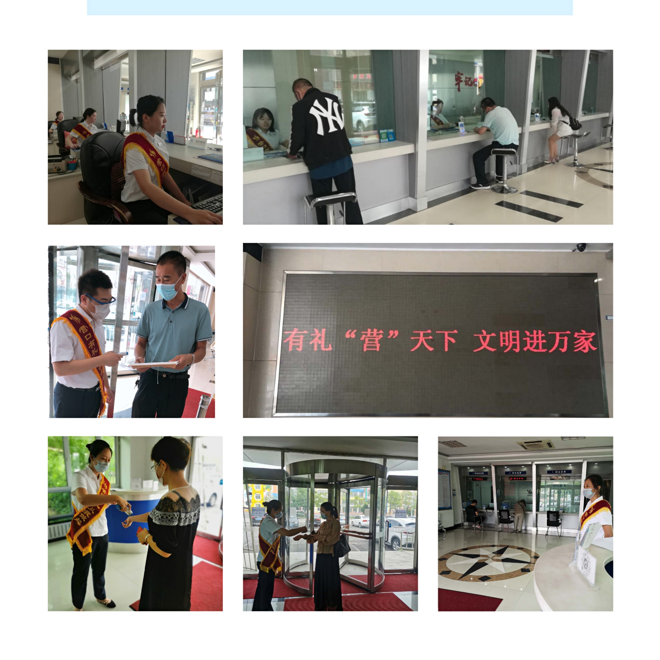 一是宣傳好“營口有禮”活動(dòng),營造濃厚氛圍。在服務(wù)大廳的電子屏上實(shí)時(shí)滾動(dòng)播出“營口有禮”宣傳口號;窗口單位開展“優(yōu)質(zhì)服務(wù)日”活動(dòng),佩戴“營口有禮,從我做起”的綬帶,引導(dǎo)市民排隊(duì)繳費(fèi),同時(shí)向市民推廣集團(tuán)微信公眾號,讓市民了解更多用水信息以及便民繳費(fèi)方式,人人成為“營口有禮”的宣傳者。