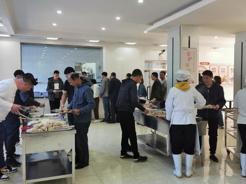 二是按需配置,合理布局。根據(jù)日常就餐需要,集團公司將職工食堂擴建240平米,食堂現(xiàn)有面積500平米;新購進桌椅40余套,可容納300人同時就餐,達到一人一位的標準;加大硬件設施改造及配套設施投入力度,將食堂建設成集儲藏室、面點間、操作間、廚房、餐廳于一體的,能夠滿足全體職工就餐需求的多功能食堂;新增雙開門蒸飯箱、壓面機、和面機、案板式冰箱等相應配套用具,配備筷子消毒機、鋼碗等全新餐具和食堂IC就餐卡,使得就餐更加清潔衛(wèi)生、方便快捷。